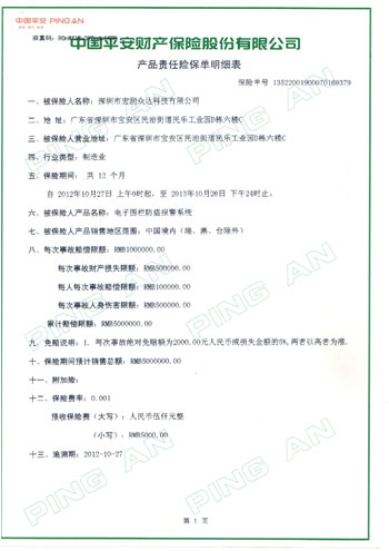 嚴(yán)格按照ISO9001:2008版標(biāo)準(zhǔn)作業(yè)流程作業(yè),嚴(yán)格管控生產(chǎn)的每一個(gè)細(xì)節(jié)來(lái)持續(xù)穩(wěn)定提高產(chǎn)品品質(zhì)。全部產(chǎn)品均獲得公安部認(rèn)證,產(chǎn)品購(gòu)買(mǎi)產(chǎn)品500萬(wàn)責(zé)任傷害。